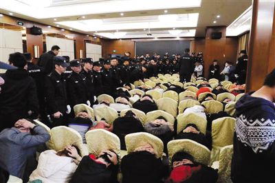 2018年12月8日,江苏南通警方在一酒店抓获正在开会的传销团伙。警方供图